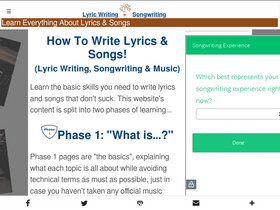 learn the basic skills you need to write lyrics and songs that don't suck. this website's content is split into two phases of learning.