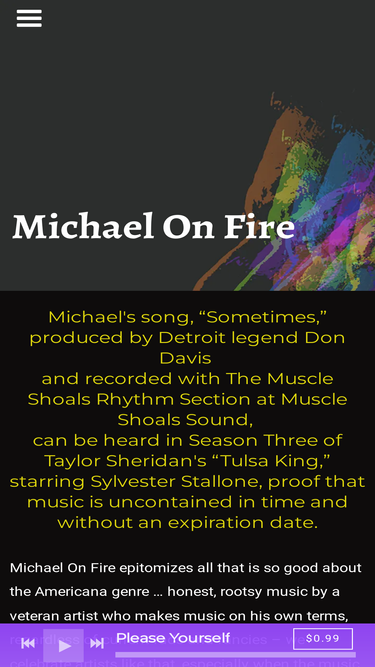 Home page of Michael On Fire, an americana artist. Michael On Fire is an intensely independent and spontaneously creative musical artist