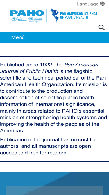 84%the pan american journal of public health (pajph) is an open access, peer-reviewed journal, published as the flagship scientific and technical periodical publication by the pan american health organization (paho)