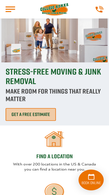 Find your local College HUNKS Hauling Junk & Moving. We have locations all over the U.S. & Canada offering free moving & junk removal estimates.
