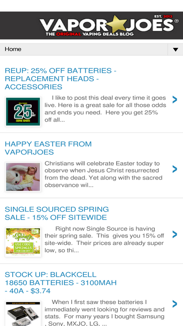 Vaporjoes.com - Daily Vaping Deals and Steals. Only the Best deals are found for the vaping community.
