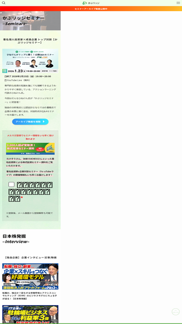 かぶリッジは企業と投資家・投資家同士の知恵をつなぐ日本株に特化したWebメディアです。仕事や家事が忙しい方でも短時間で「応援したい」企業が見つかるセミナー・動画・記事をお届けします。