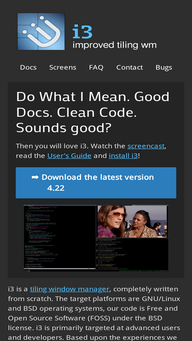 i3 is a tiling window manager with clean, readable and documented code, featuring extended xinerama support, usage of libxcb instead of xlib and several improvements over wmii