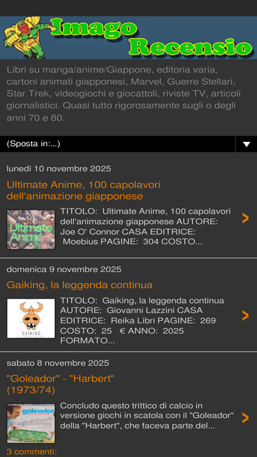 Libri su manga/anime/Giappone, editoria varia, cartoni animati giapponesi, Marvel, Guerre Stellari, Star Trek, videogiochi e giocattoli, riviste TV, articoli giornalistici. Quasi tutto rigorosamente sugli o degli anni 70 e 80.