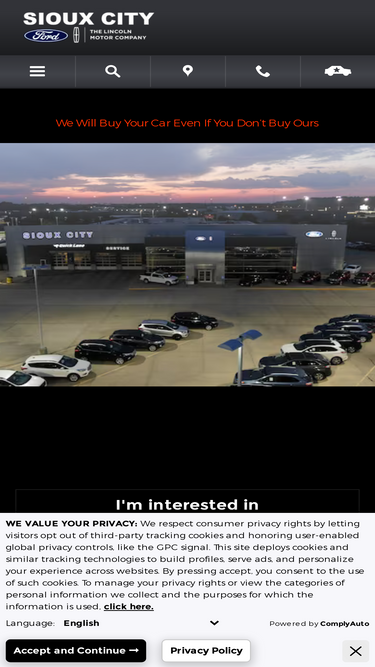 Visit us and test drive a new or used Ford, Lincoln at Sioux City Ford Lincoln. Our Ford, Lincoln dealership always has a wide selection and low prices. We've served hundreds of customers from South Sioux City, North Sioux City and Sergeant Bluff.