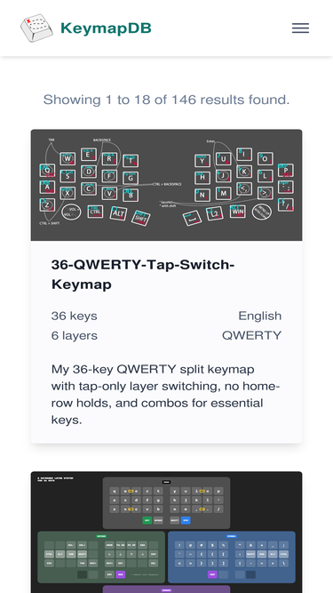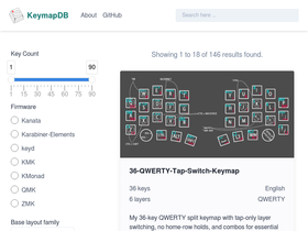 KeymapDB is a public and open-source online database for keymaps of programmable keyboards, with a focus on QMK ergonomic mechanical keyboards. You can filter user-submitted keymaps like Miryoku by key count, firmware, keyboard, stagger, languages, OS, home row mods, and more!