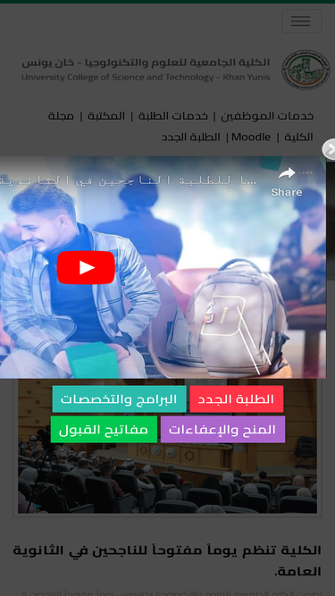 أُنشِئَت الكلية الجامعية للعلوم والتكنولوجيا - بخان يونس عام 1990 م كمؤسسةٍ أهلية، تُعنى بتدريس العلوم التقنية، وقد تولي مجلس التعليم العالي بالقدس الإشراف عليها عام 1994م، ثم تولت وزارة التربية والتعليم العالي الإشراف عليها، وأصبحت الكلية مؤسسة حكومية عام 1997 ومنذ تلك اللحظة لم تدّخر إدارة الكلية وبالتعاون مع وزارة التربية والتعليم العالي جهداً لجعل الكلية نواةً لجامعةٍ أكاديميةٍ رائدةٍ في مجال التعليم التقني التكنولوجي يخدم قطاعاً كبيراً من أبناء شعبنا الفلسطيني. تمنح الكلية خريجيها درجتي البكالوريوس والدبلوم المتوسط في أربعةٍ وعشرينَ تخصصاً علمياً تقنياً ضمن برنامج دراسي متميز، وفق نظام الساعات المعتمدة، حيث يدرس الطالب 66 -75 ساعة معتمدة موزعة علي أربعةِ فصولٍ في تخصصاتِ درجة الدبلوم، وثمانيةِ فصولٍ دراسيةٍ موزعةٍ على أربعِ سنواتٍ لتخصصاتِ البكالوريوس، باستثناء تخصص المباني خلال خمسة أعوام، وتوزع الساعات المعتمدة لهذا التخصص على عشرة فصولٍ دراسية.