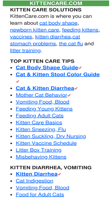 tips to help you care for your cat and kitten with topics ranging from new born care, diarrhea, body shape, vaccination, feeding, removing fleas, sneezing, nursing, litter training and more