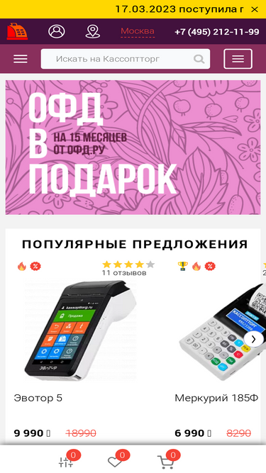 92%в интернет-магазине кассоптторг представлен широкий выбор кассовых аппаратов, любой из которых можно зарегистрировать с онлайн передачей данных и доставкой. в нашем каталоге вы можете подобрать кассовый аппарат. заказать и купить онлайн-кассу в москве по низкой цене, в том числе в рассрочку, можно в интернет-магазине – продажа осуществляется с доставкой в москве и по россии.