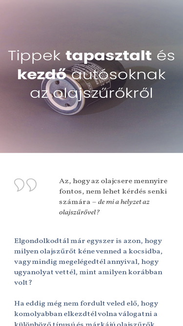 az, hogy az olajcsere mennyire fontos, nem lehet kérdés senki számára – de mi a helyzet az olajszűrővel? elgondolkodtál már egyszer is azon, hogy milyen olajszűrőt kéne venned a kocsidba, vagy mindig megelégedtél annyival, hogy ugyanolyat vettél, mint amilyen korábban volt?