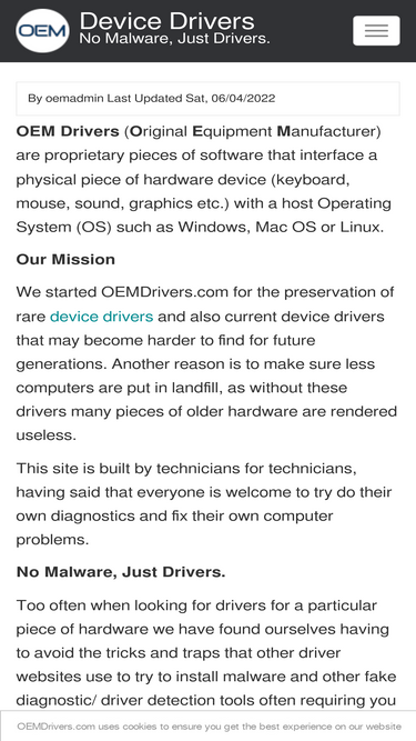 preservation and sustainabilityoemdrivers.com was created to preserve rare device drivers and archive current ones that may become difficult to find in the future. by revamping older hardware, we help reduce the number of computers in landfills, contributing to a greener future. without access to these drivers, much older hardware would become obsolete, so our work ensures these devices remain functional for years to come.what are oem drivers?