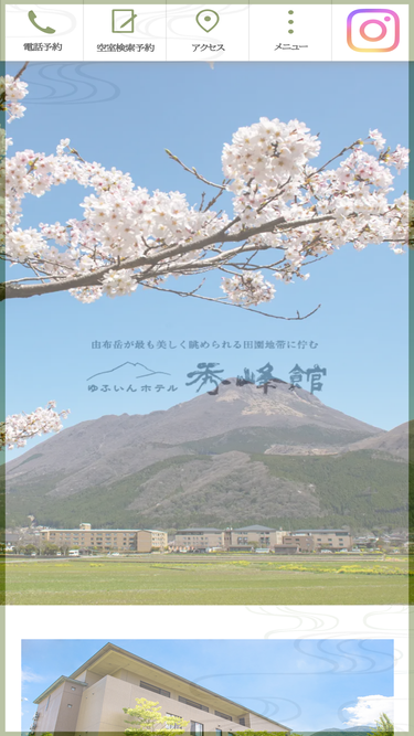 湯布院 ゆふいんホテル秀峰館は、由布岳がもっとも美しく眺められる田園地帯に佇む宿です。開放感溢れる展望大浴場、併設の露天風呂。豊後牛のしゃぶしゃぶをメインにした会席料理をご用意しています。