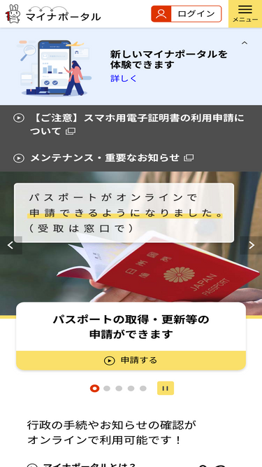 マイナポータルは、行政手続のオンライン窓口です。ご自身の所得・地方税、行政機関からのお知らせなど、必要な情報をいつでも確認できます。また、お住まいの地域のサービスや手続をお手元のパソコンやスマートフォンで簡単に検索でき、手続によってはそのまま申請できます。