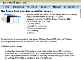 advanced ssh client for windows with autoconfiguration. use private shell to establish secure shell and secure ftp connections. establish ssh connection either using gui or command line (ssh.exe, scp.exe are included). connect cvs via ssh using private shell ssh client for windows. ssh tunneling (port forwarding) feature is available in private shell. in addition to ssh client private shell also includes powerful sftp client for windows (secureftp client).
