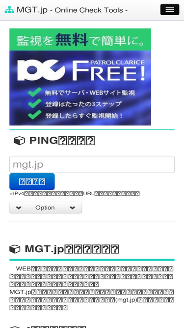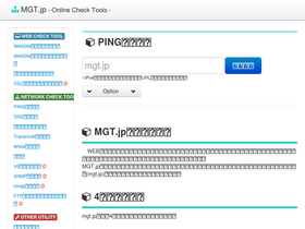 92%mgt.jpではネットワーク管理者やサイト管理者が便利に使えるオンラインツール(ping,whois,パフォーマンスチェックなど)を無料提供しています。