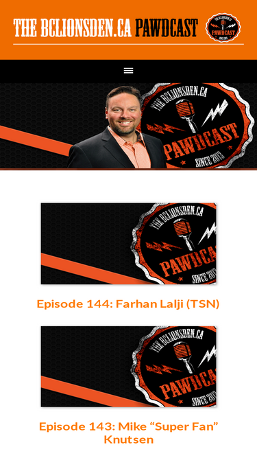 71%About The BCLionsDen Pawdcast - We're back! Welcome to BCLionsDen.ca and in particular our podcast, or pawdcast as we like to refer to it. My name is Brian Wawryshyn, and I have been a fan of the BC Lions of the Canadian Football League for 49 years and counting and a season ticket holder since