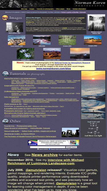 fine art photographs and tutorials on photographic technique, image quality and digital printing by norman koren
