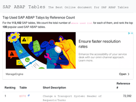 sap transaction codes, tables, fms, abap reports, bw datasources, profile parameters, and authorization objects; grouped by module and sub-modules. use the smart search to find any sap tcode, table and other objects instantly.