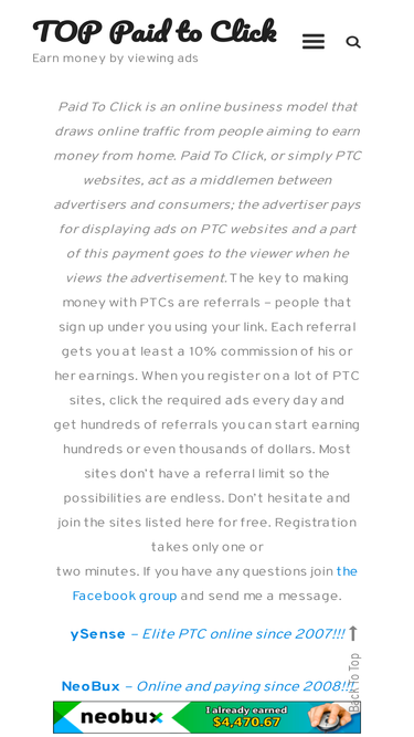 64%paid to click sites pay you for viewing ads and referring other people. the most popular and trusted sites are listed here. register now and start earning!