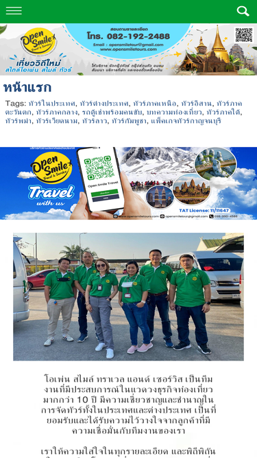 ติดต่อทีมงาน โอเพ่น สไมล์ ทราเวล แอนด์ เซอร์วิส บริษัทให้บริการนำเที่ยวในประเทศและต่างประเทศ โดยทีมงานมืออาชีพ