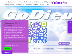 87%bienvenue sur godieu.com génération 3.0 avec plus de 42 200 pages de contenu consultable, source d'informations chrétiennes et bibliques, et les textes bibliques authentiques, ainsi que plus de 2200 mp3 de musiques chrétiennes.