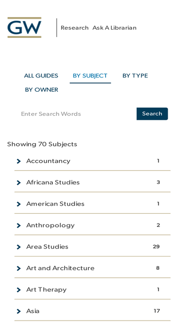 Research databases are available off-campus to members of the GWU community only and have terms of use. Selected databases are available to alumni.