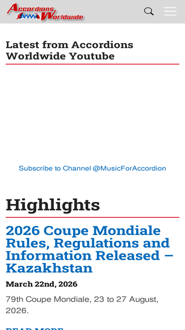the largest accordion internet site in the world, weekly news in 7 languages: english, german french, italian, spanish, russian and chinese, general information on the accordion and bellows related instruments, list of all accordion producers, accordion yellow pages events calendar with direct adding of concerts, masterclasses, seminars, concerts, festivals, accordion history, cd reviews, videos, accordion articles, memorials, celebrity interviews, stolen list, accordion types, internet site design and hosting, banner advertising, advertising, publications, pictures, photos, video, accordion-space4u.com
