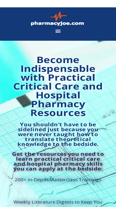 About founder of pharmacyjoe.com, the critical care pharmacy resource website.