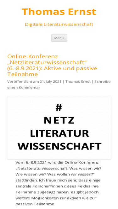 Verantwortlich für den Inhalt nach § 55 Abs. 2 RStV: Dr. Thomas Ernst webmaster@thomasernst.net Dies sind meine privaten Webseiten, Sie können jedoch, wenn nötig, auch Kontakt zu mir aufnehmen über meine Dienstadresse: Dr. Thomas Ernst University of Amsterdam Faculty of Humanities Department of Modern Foreign Languages and Cultures Spuistraat 134 NL-1012 VB Amsterdam Phone: +31-20-525-3876 […]