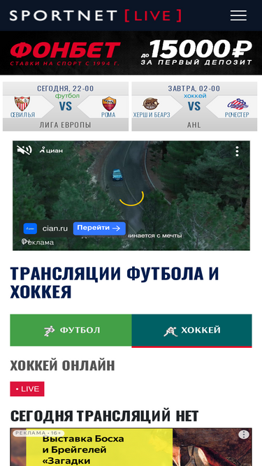 92%Прямые онлайн трансляции спортивных матчей хоккея и футбола. Бесплатно, без регистрации и в отличном качестве!