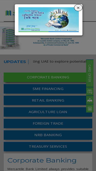 in 1999, a visionary group embarked on a mission to contribute to the sustainable development of bangladesh's economy. thus, mercantile bank plc. (mbplc.) was born, a bank that has earned a credible brand reputation, and the trust and loyalty of its customers since its inception on june 2nd, 1999.