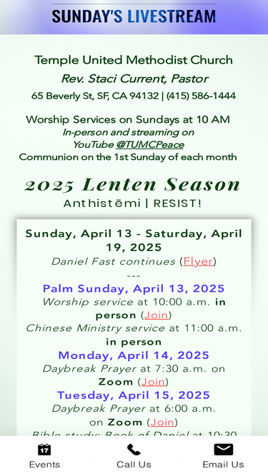 Welcome to SF Temple UMC! We are a diverse welcoming church community sharing the love of Jesus Christ in the San Francisco Bay Area and beyond.