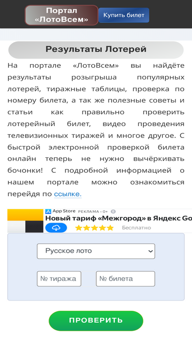 73%проверьте на нашем портале «лотовсем» билеты русского лото, жилищной лотереи, и многих других лотерей 2024.