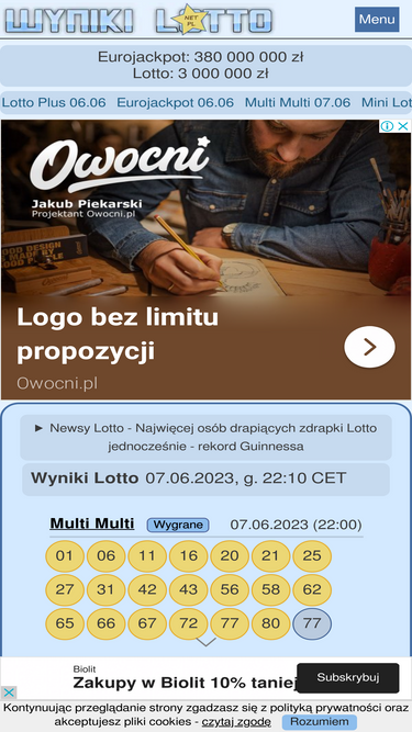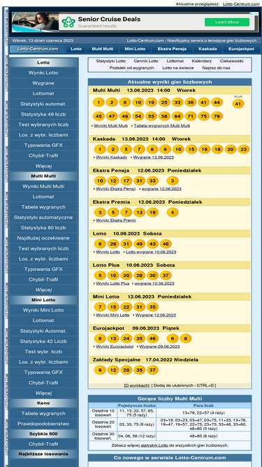 lotto - przyjazna strona dla miłośników gier liczbowych. natychmiastowe wyniki lotto, multi multi, informacje o wypłacanych wygranych, typowania graczy, konkursy, mapy losowań, kumulacje.
