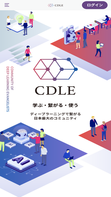 59%CDLEコミュニティサイトβ版の公式コンテンツページです。JDLA(一般社団法人日本ディープラーニング協会)が実施する、G検定・E資格の合格者のみが参加できる、10万人を超える日本最大級のAIコミュニティ「CDLE」の紹介サイトです。 CDLEでは、ディープラーニングの社会実装の日本代表として、社会を発展させるエバンジェリストたちが集まり、学び合い・アウトプットする場を提供しています。