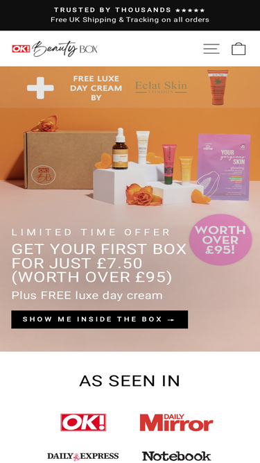 ✨ What you’ll get when you join OK! Beauty Box ✨ 5+ beauty must-haves, delivered monthly – from skincare heroes to makeup favourites, handpicked by our beauty editors. Always £80+ in value – often much more (our editors love spoiling you). OK! magazine vouchers – enjoy two copies on us every month, worth £9.20. Total flexibility – pause, skip, or cancel whenever you like. Free tracked UK delivery – straight to your door, in our eco-friendly recyclable box. Expert guidance – every box comes with a tips flyer from our beauty team, so you’ll know how to get the most out of each product. VIP perks – early access to limited editions, exclusive discounts, Rewards Club points + Refer a Friend bonuses.