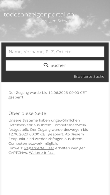 73%traueranzeigen aus der schweiz nach orten mit umgebungssuche, täglich hunderte von aktuellen todesanzeigen, danksagungen, erinnerungen, nachrufen. mit anzei genarchiv.