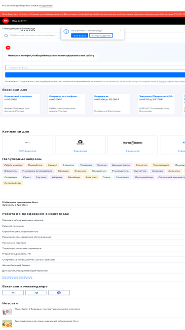 volgograd.hh.ru — сервис, который помогает найти работу и подобрать персонал в Волгограде более 20 лет! Создавайте резюме и откликайтесь на вакансии. Набирайте сотрудников и публикуйте вакансии.