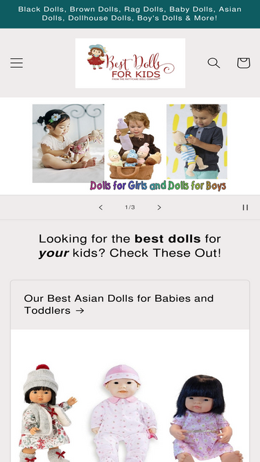 Grandparents! Find your kids their Perfect Dolls! Dolls for Girls and Dolls for Boys. Black Dolls, Asian Dolls, Hispanic, Biracial and Multicultural Dolls. Dolls for all ages from Newborn to Toddlers, or for Pre-school and older. All at BestDollsForKids.com