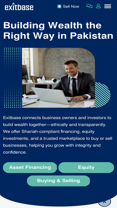 Exitbase connects Pakistani SMEs and investors. Explore Shariah-compliant asset financing, equity investments, and a trusted marketplace to buy or sell businesses.