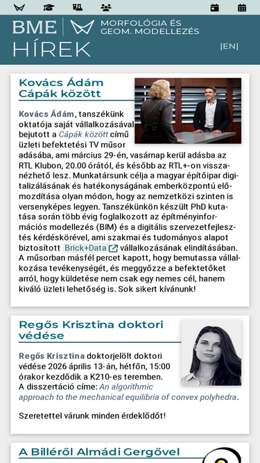 89%bme • morfológia és geometriai modellezés tanszék • informatika, geometria oktatás