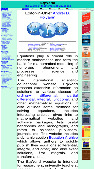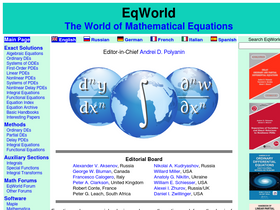 the eqworld website presents extensive information on ordinary differential, partial differential, integral, functional, and other mathematical equations.