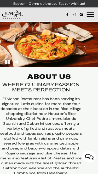 78%El Meson Restaurant has been serving its signature Latin cuisine for more than four decades at their location in the Rice Village shopping district near Houston's Rice University. Chef ...