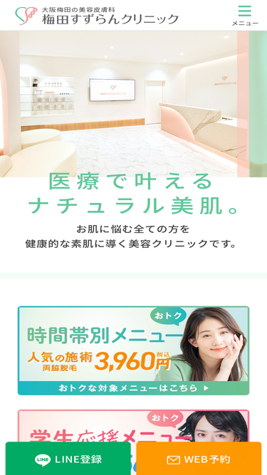梅田すずらんクリニックは、大阪駅前第3ビル2階の美容クリニックです。各線大阪駅・梅田駅・東梅田駅・西梅田駅・北新地駅より、地上からでも地下街からでも徒歩で行けます。ダウンタイムの少ない治療を取り揃えておりますので、仕事帰りやショッピング帰りに是非お立ち寄りください。