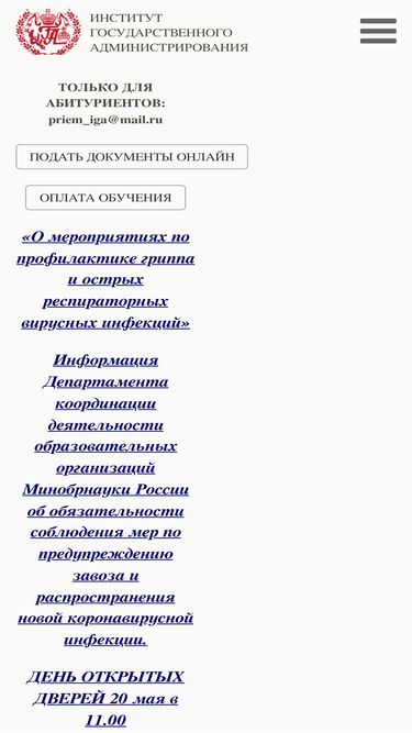 Частное учреждение высшего образования «Институт государственного администрирования» (ЧУ ВО «ИГА») основано 1 марта 1994 года.