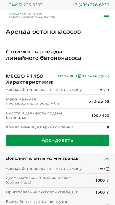 92%услуга аренды спецтехники на выгодных условиях в компании гк спецмаш! большой автопарк бетононасосов известных марок. сдача в аренду спецтехники с доставкой на объект по москве и московской области! ☎ 8(495)226-6203