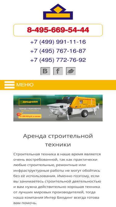 аренда и продажа строительной техники в москве, мо и регионах россии. интер билдинг - строительная техника и бетононасосы. онлайн заказ +7 977 179-72-96
