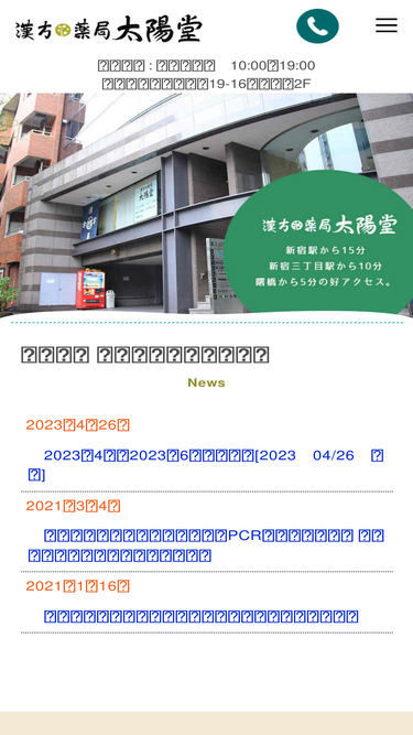 新宿にある漢方薬局 太陽堂. ... 当薬局のWEBサイトをご覧いただき、ありがとうございます。 私たち太陽堂は「一人でも多くの方の笑顔を見る為に」という思いのもと開局しました。 漢方薬とお客様の出会いがお悩み、体質改善の一助になれれば幸いです。