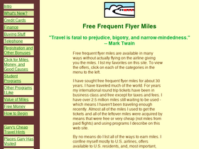 free and cheap frequent flyer airline miles, airline miles deals, credit cards, financial offers, telephone offers, isp offers, shopping portals, airline registrations, student programs, miles for clicking, value of miles, how to begin collecting miles, new offers. complete and up to date.