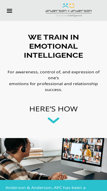 We Train inEmotionalIntelligence For awareness, control of, and expression of one’semotions for professional and relationship success. HERE’S HOW Anderson & Anderson, APC has been a California Chartered Professional Corporation since 1982. Our mission is to provide high quality professional services and products in emotional intelligence, executive coaching, batterer’s intervention and anger management for children, adolescents […]